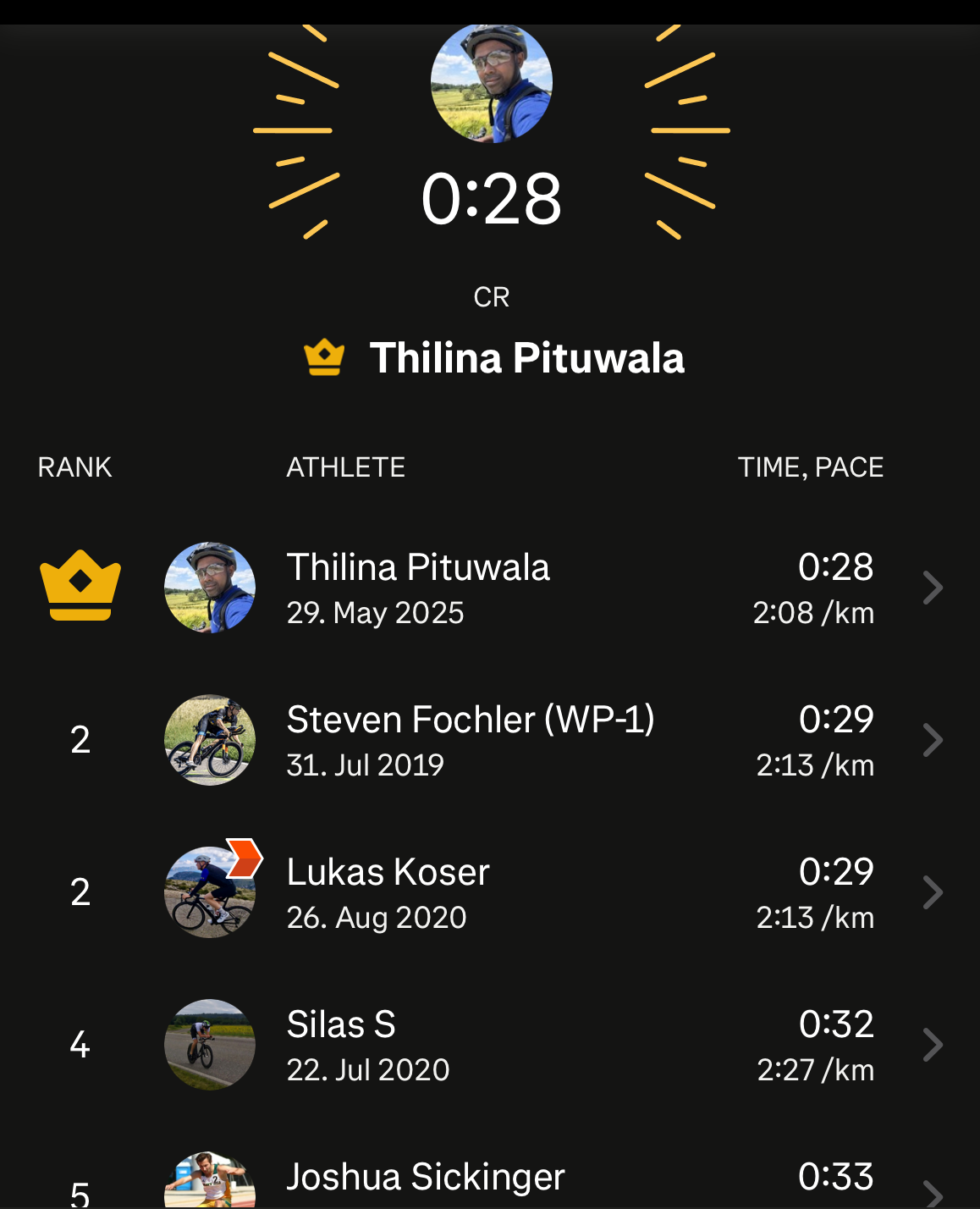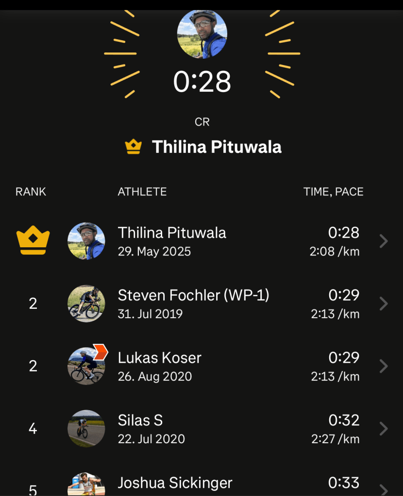 I know there won’t be many people running on this track and record their stats on Strava. But I’m still happy to stay on the top of the leaderboard for 400 and 200 meters on this track. Even though it’s not a big deal for a high school kid to break it, I hope it won’t happen soon 😃.