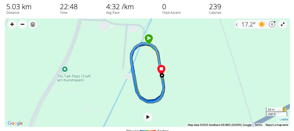 From all the efforts on this track, this 22 minute 5k, the fastest 5k for me so far is the most pleasing effort for me. It came at a stressful time at work, and probably that stress added some extra adrenaline to the run 😃.